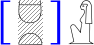modify[after=2,omit](cartouche(.)) ![shade] - empty - . : ![noshade] modify[above=1.5,omit](A2)For the second use of the function 'modify', we may specify values for the attributes 'width' and/or 'height'. This makes the scaling algorithm scale the hieroglyphs within the constraints of the specified values. E.g. the following indicates that we want to make the groups of hieroglyphs exactly 2 EM wide, and to accomplish this goal, either the hieroglyphs may be scaled down or extra white space may be inserted (since we never scale up).